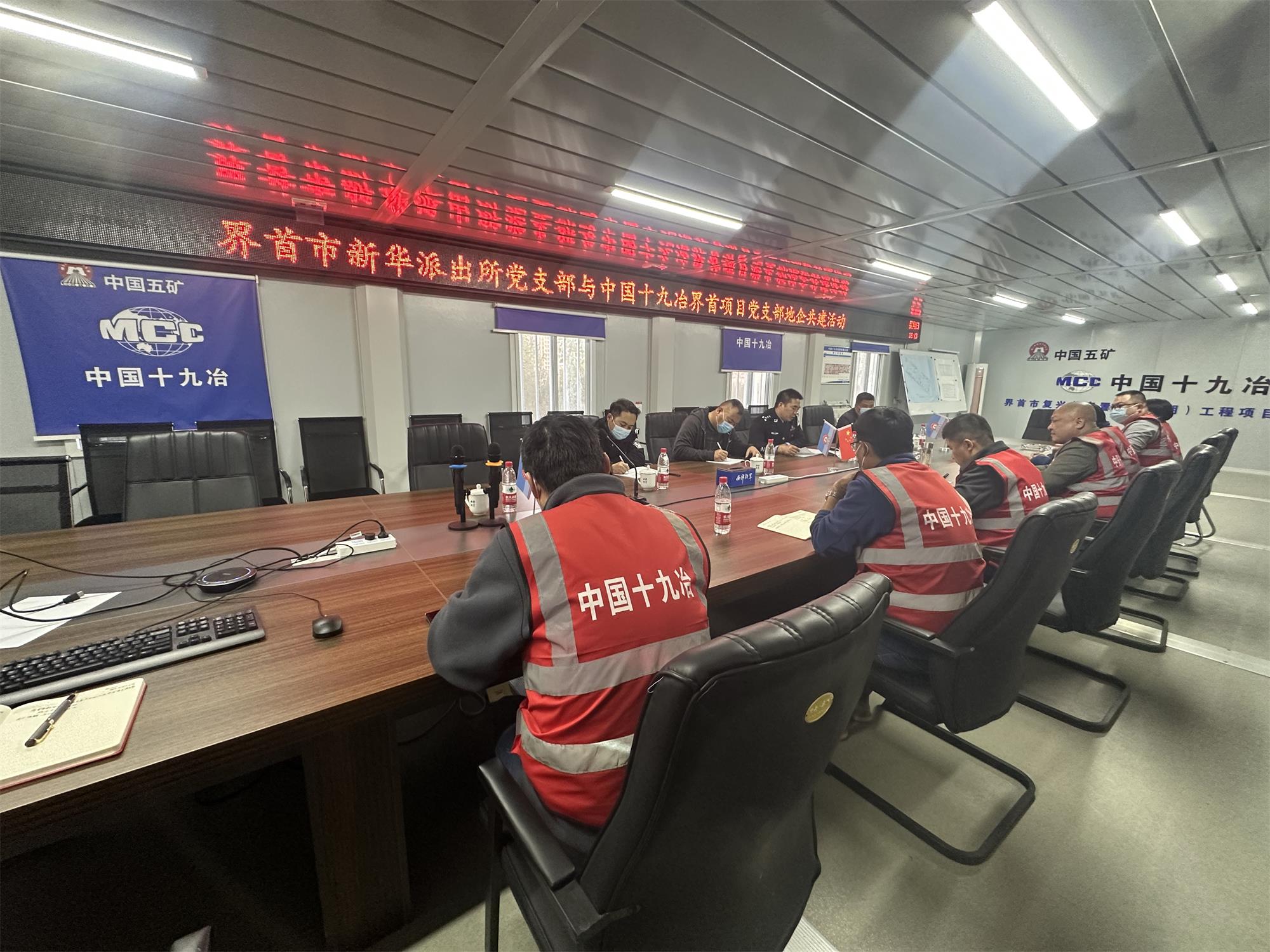 雙方支部黨員首先在項目現(xiàn)場進行觀摩,界首市新華派出所同志對現(xiàn)場安全文明施工細節(jié)表示肯定。在隨后的座談會上,界首項目黨支部書記首先領學了黨的二十大報告,詳細宣貫了報告中有關推進國家安全體系和能力現(xiàn)代化,堅決維護國家安全和社會穩(wěn)定的內容。新華派出所黨支部書記領學了習近平總書記關于總體國家安全觀重要論述,講解了當?shù)匕踩芾項l例與近幾年的生產(chǎn)安全事故,為項目部生產(chǎn)安全發(fā)展提供了具有針對性的意見建議?;顒幼詈?,雙方黨支部就未來支部共建實現(xiàn)長期互動達成了共識,紛紛表示要以此次聯(lián)建共建活動為契機,進一步加強支部間的黨建和業(yè)務工作的互聯(lián)互通。